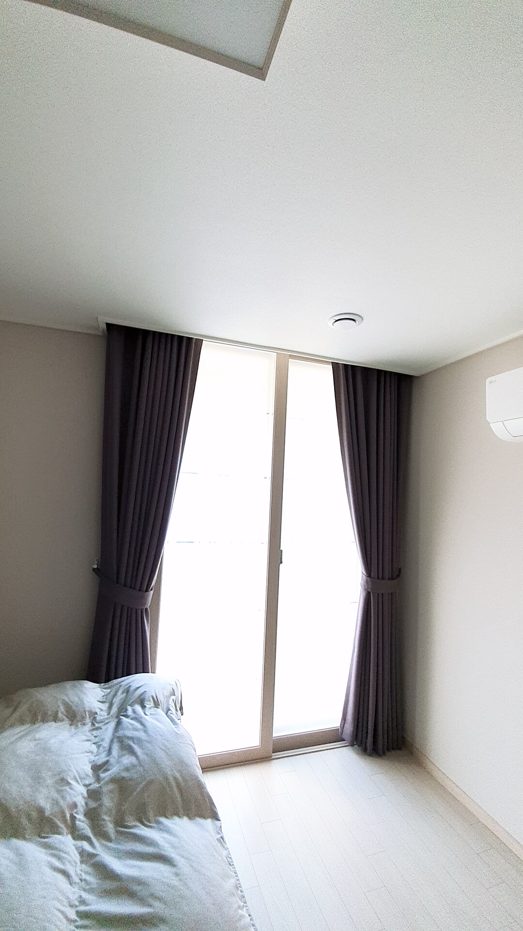 안방에는 속지를 제외한 암막커튼 단독으로 설치를 진행하였고 거실과 마찬가지로 일정한 주름을 유지할 수 있게 형상기억 가공처리로 완성되었습니다.