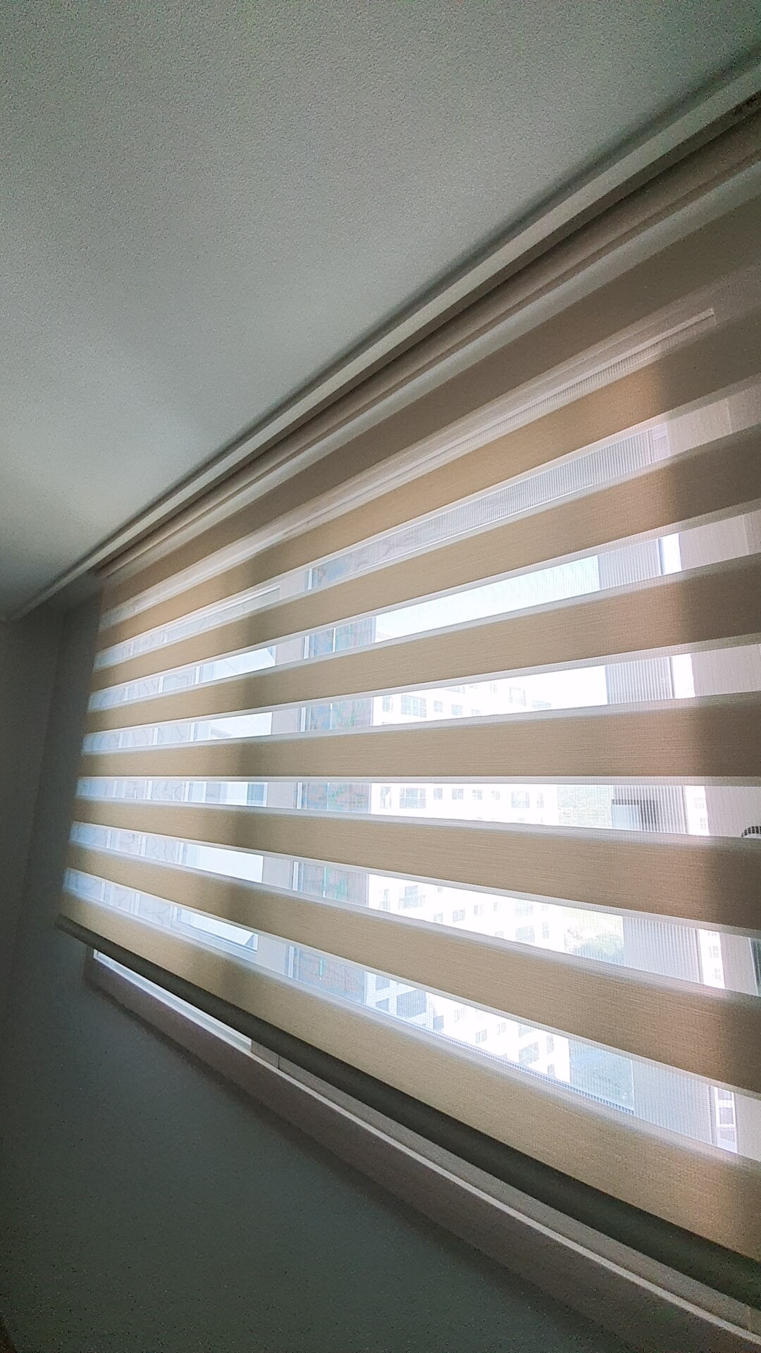 밝은 색상의 콤비블라인드이지만 집안으로 들어오는 강한 빛은 막을수 있으며 자유롭게 채광조절로 사용할 수가 있습니다.